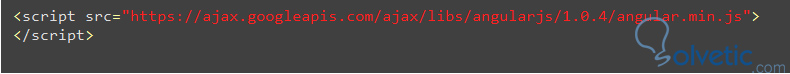 Veamos en la siguiente imagen un ejemplo de cómo incluir AngularJS en nuestra aplicación utilizando la primera opción de llamar a la librería desde la CDN de Google.