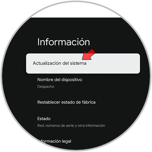 Verás diferentes opciones. En este caso tienes que pulsar sobre "Actualización del sistema"