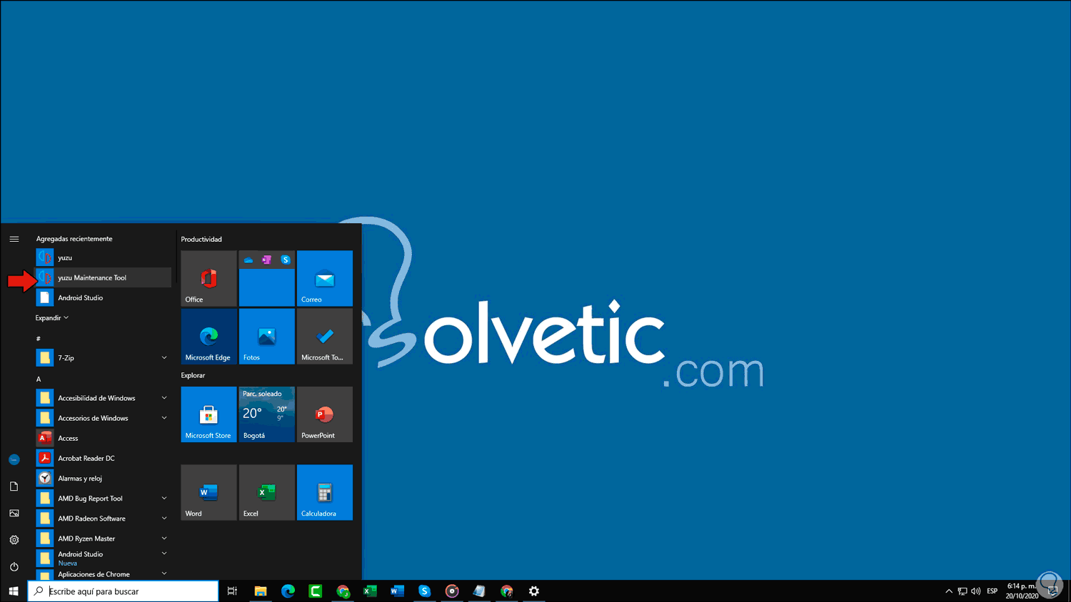 Para su desinstalación definitiva del sistema vamos al menú Inicio y allí debemos ubicar la opción “yuzu Maintanance Tool”: