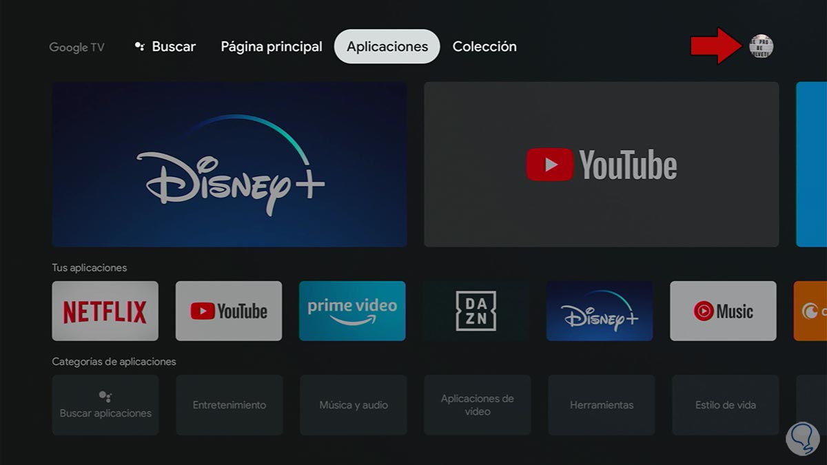 Lo primero que debes hacer es entrar en tu cuenta de Chromecast y pulsar sobre la imagen de perfil de la esquina superior.