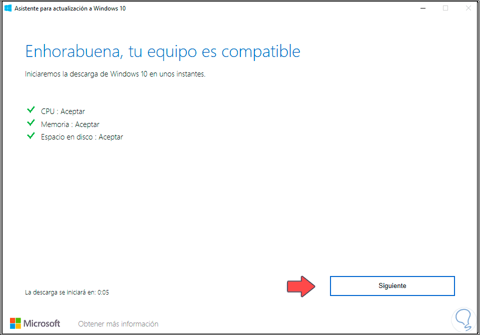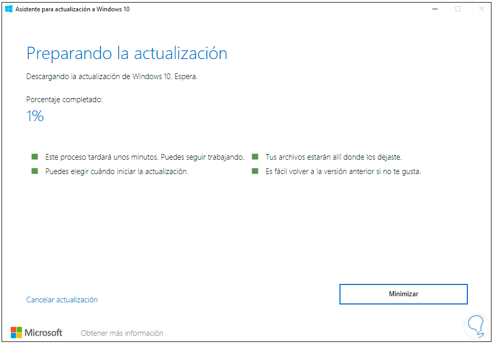 Una vez validado esto damos clic en Siguiente y se dará paso al proceso de descarga de la actualización October 2020:
