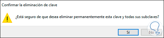 Damos clic en Sí y vemos que se ha eliminado esta clave:
