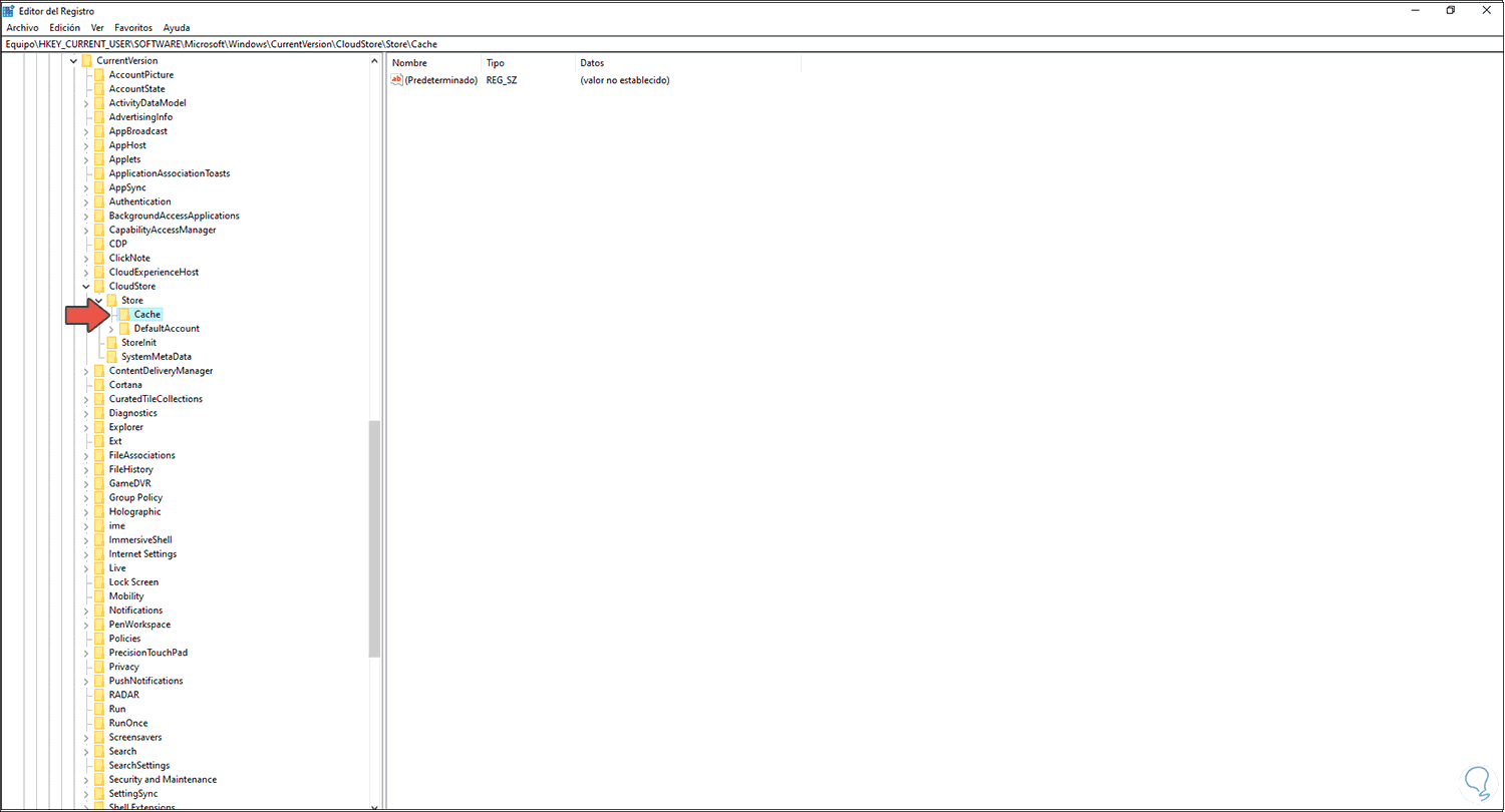 HKEY_CURRENT_USER\SOFTWARE\Microsoft\Windows\CurrentVersion\CloudStore\Store\Cache\DefaultAccount