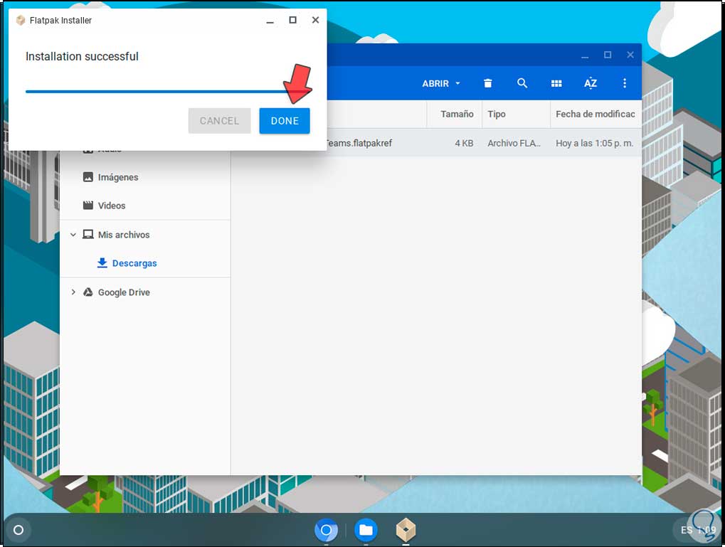 Confirmamos la acción dando clic en “Install”, esto descargará todos los datos requeridos para Microsoft Teams en Chromebook: