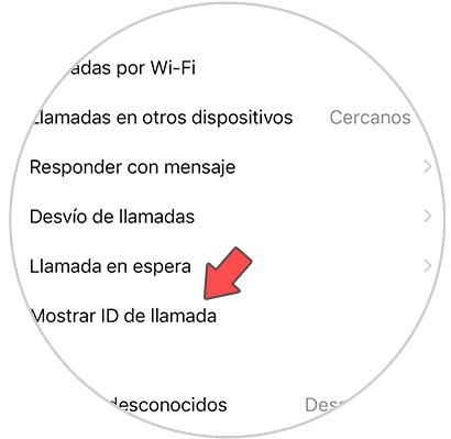 Estarás en una nueva pantalla. En este caso ve a la opción de "Llamadas" y pulsar sobre la opción “Mostrar ID de llamada”.
