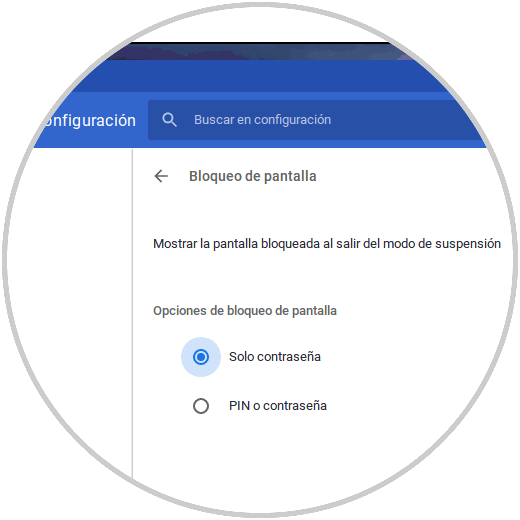Damos clic sobre la opción “Bloqueo de pantalla”, y debemos ingresarla contraseña de usuario para realizar los cambios: