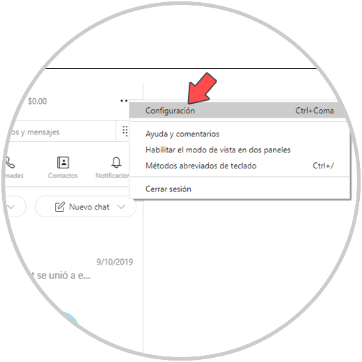 El primer paso a dar es acceder a Skype e ir al menú “Más” y allí elegir “Configuración”: