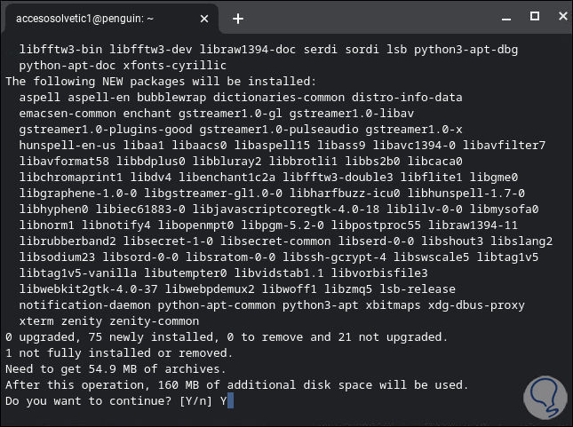En la terminal vamos a actualizar los paquetes con el siguiente comando:
