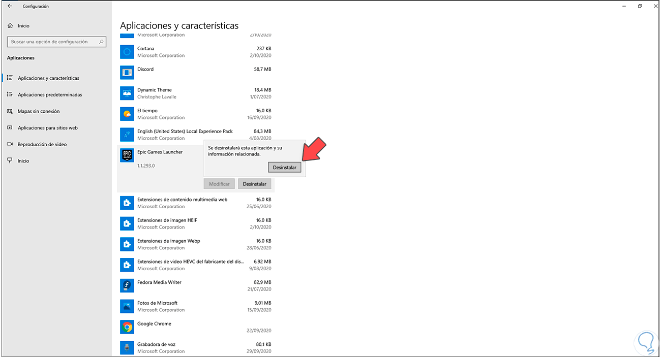 Esto dará paso al proceso de desinstalación del Epic Games Launcher en Windows 10: