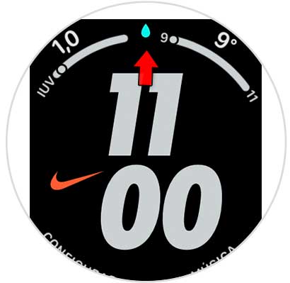 Una gota aparecerá en la parte superior de la pantalla principal del Apple Watch. Y esto significará que el Bloqueo de agua está activado en el mismo.