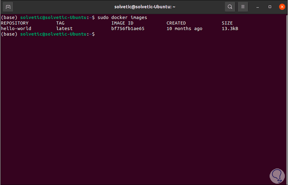 Finalmente listamos las imágenes de Docker con la siguiente orden: