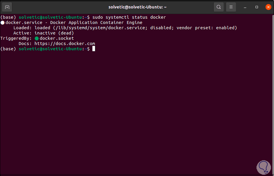 De nuevo ejecutamos “sudo systemctl status Docker” para ver el estado ahora: