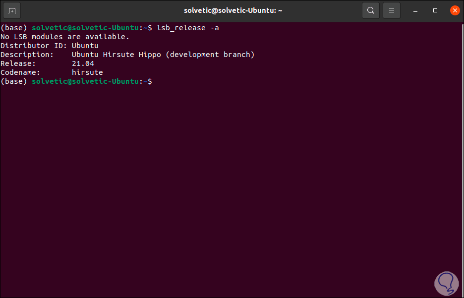 Comprobamos que estemos usando Ubuntu 21.04 con el siguiente comando:
