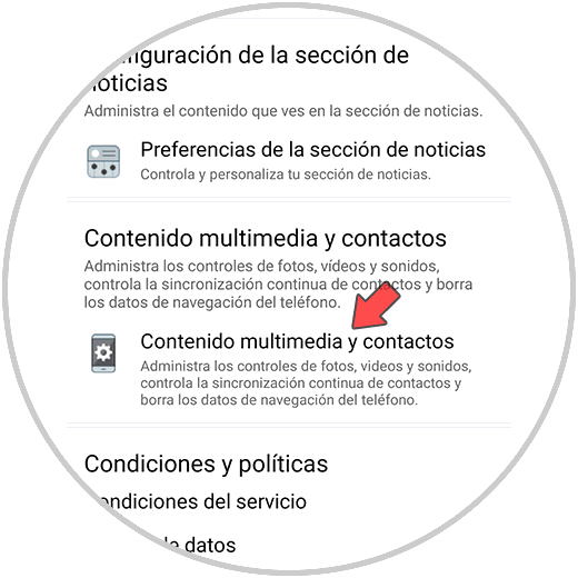 Una vez dentro de la configuración, tienes que pulsar sobre "Contenido multimedia y contactos"