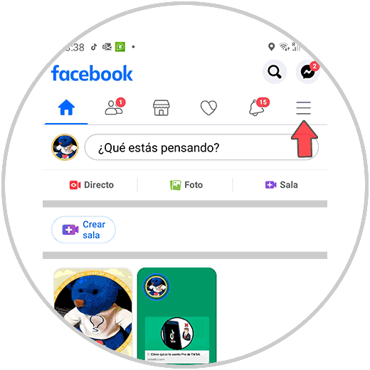 Lo primero que debes hacer es entrar en Facebook y pulsar sobre el menú superior de las tres rayitas.