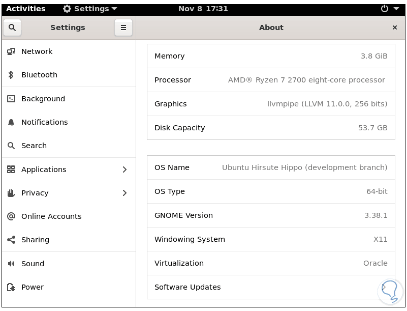 Si vamos a la opción Acerca de validamos que la interfaz es X11 (Gnome):