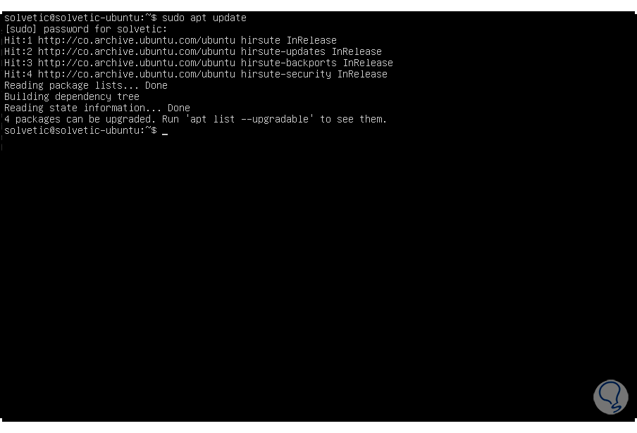 Actualizamos los paquetes disponibles con el siguiente comando: