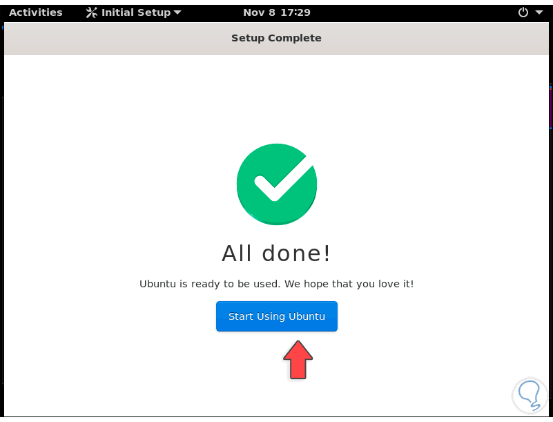 Finalmente, la configuración de Gnome se ha completado: