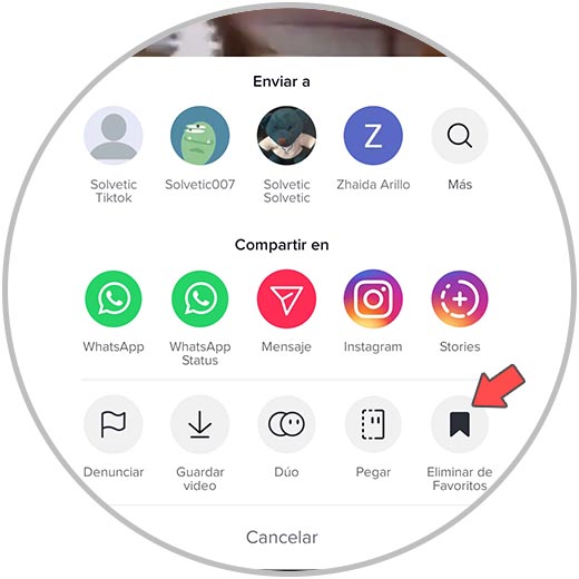 Verás que en el menú inferior aparece la opción que pone "Dejar de guardar en favoritos". Debes pulsarla.
