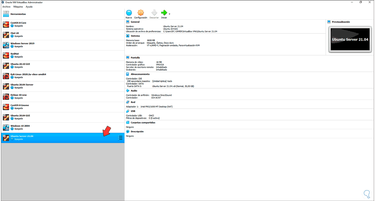 Cómo instalar Ubuntu Server 21.04 en VirtualBox