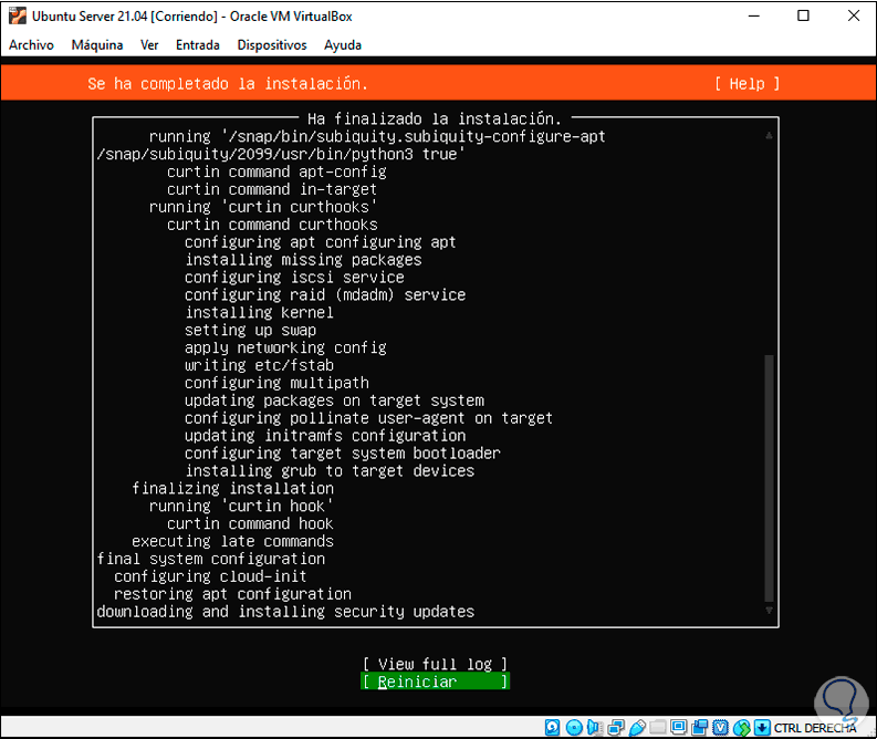 Se iniciará de nuevo Ubuntu Server 21.04: