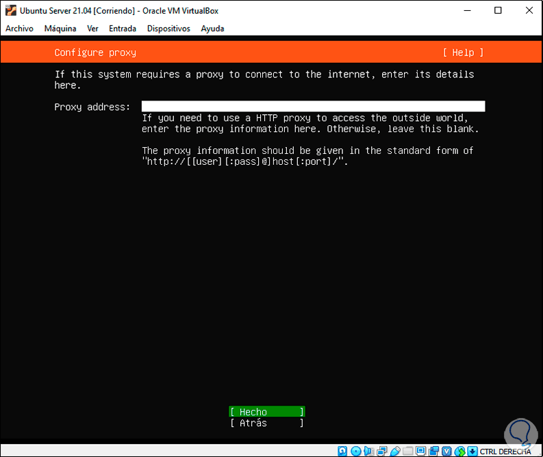 Damos clic en Hecho y luego podemos añadir un servidor proxy si disponemos de uno: