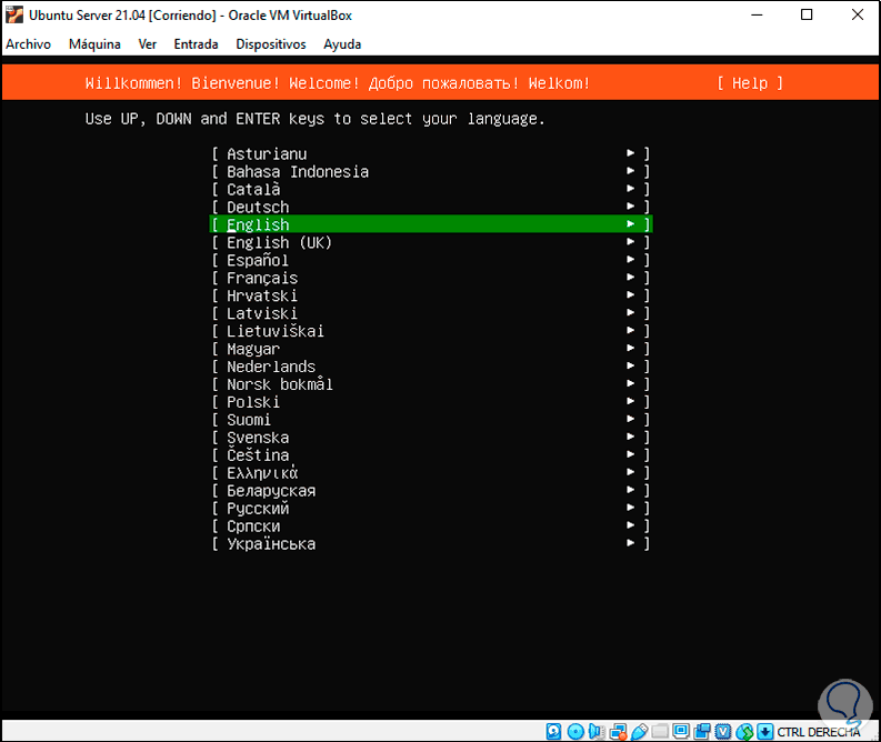 Cuando este finalice seleccionamos el idioma deseado para el sistema: