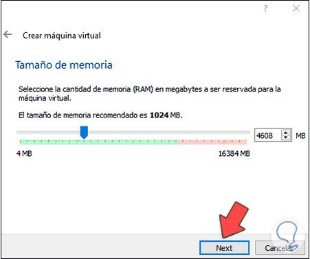 Damos clic en Next y asignamos la memoria RAM a la máquina virtual de Ubuntu Server 21.04: