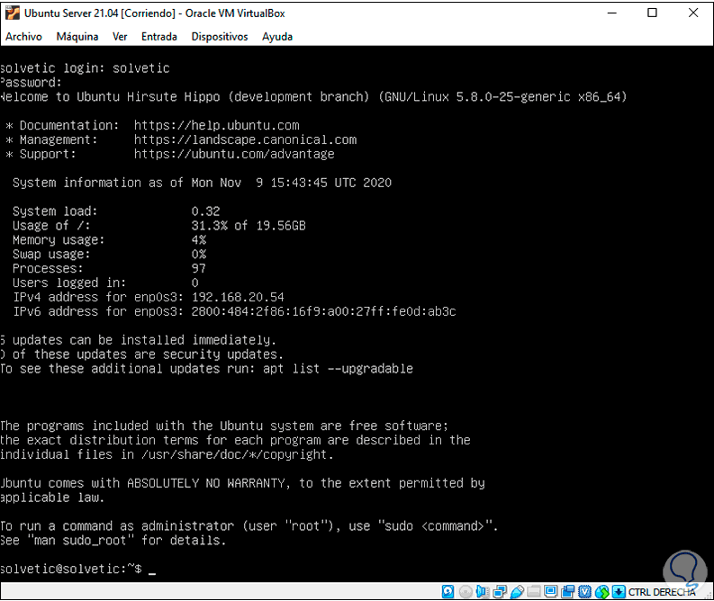 Con Solvetic has visto como instalar Ubuntu Server 21.04 de forma práctica en VirtualBox.