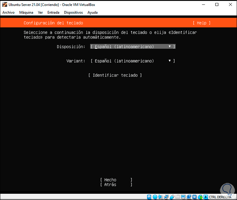 Lo confirmamos con Enter y luego configuramos el teclado: