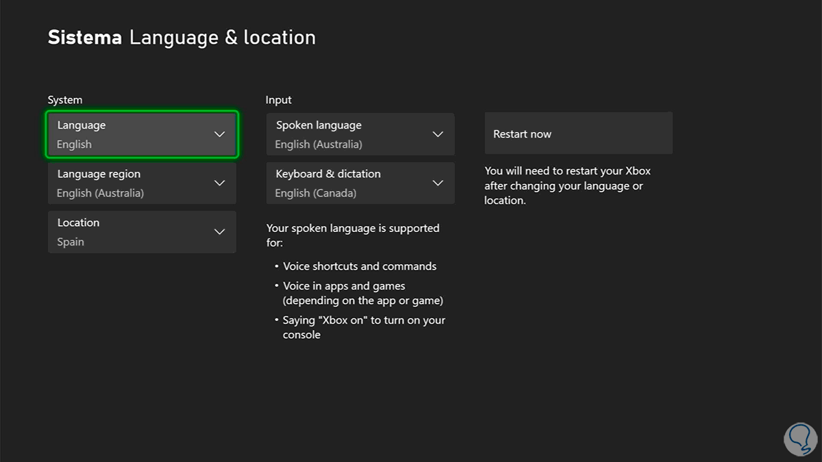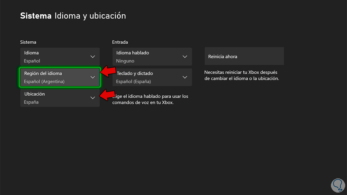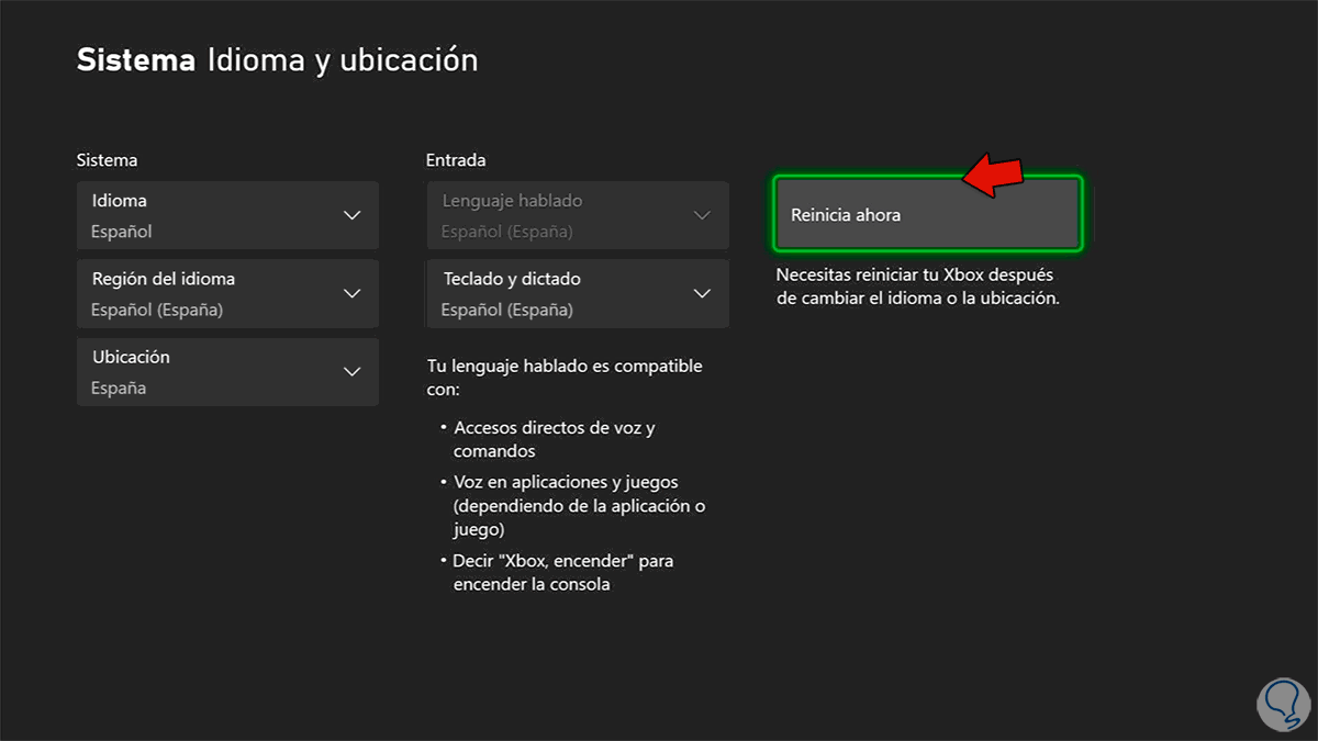 Para aplicar los cambios será necesario reiniciar la Xbox desde la opción “Reiniciar ahora”.