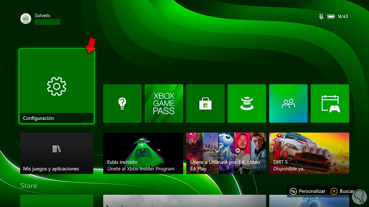 Lo primero que haremos será entrar en el panel principal de “Configuración” dentro de nuestra Xbox.