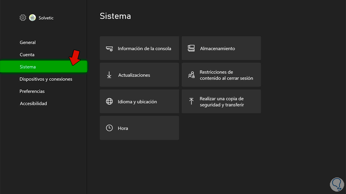 A continuación, iremos al menú de la izquierda y seleccionaremos la opción de “Sistema”