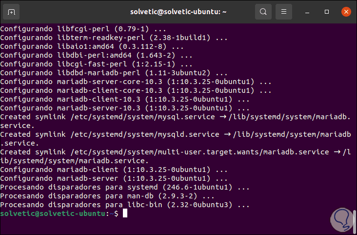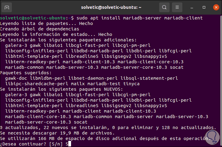 Ahora vamos a instalar MariaDB, con MariaDB contaremos con un sistema de administración de bases de datos relacionales, para su instalación ejecutamos: