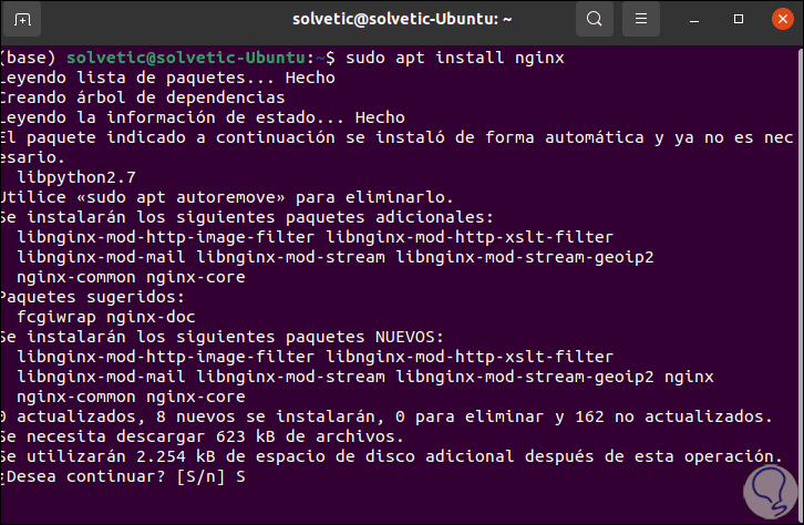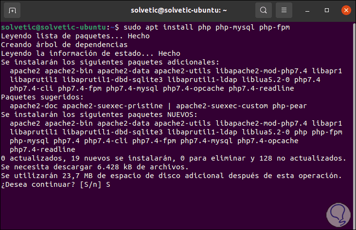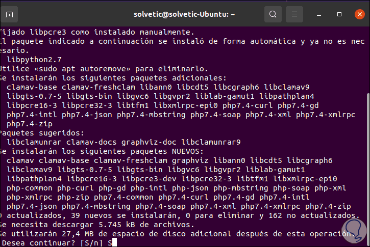 Ingresamos la letra S para confirmar la descarga e instalación de estos complementos: