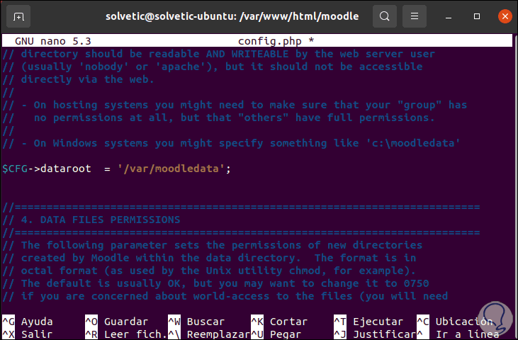 sudo mkdir -p /var/moodledataOtorgamos los permisos necesarios: