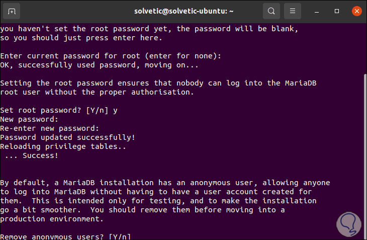 sudo mysql_secure_installationAl pulsar Enter asignaremos la contraseña de root: