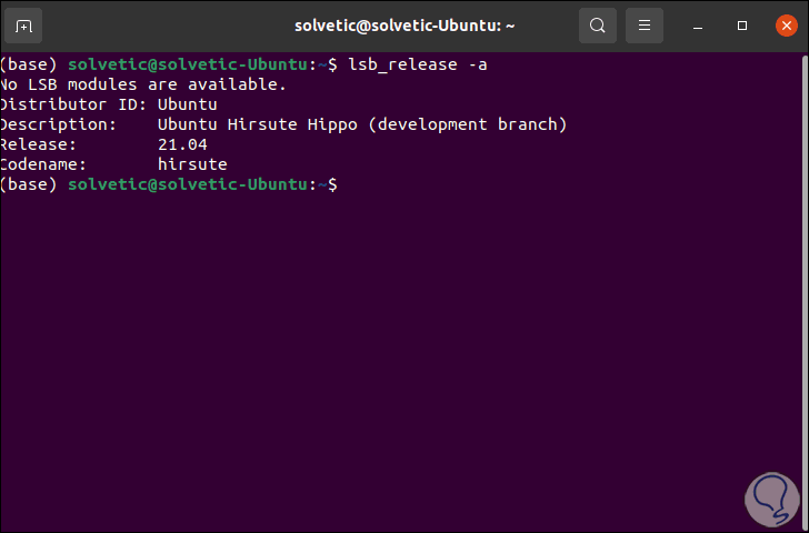 Lo primero es comprobar que estamos usando Ubuntu 21.04, para ello en la terminal ejecutamos lo siguiente: