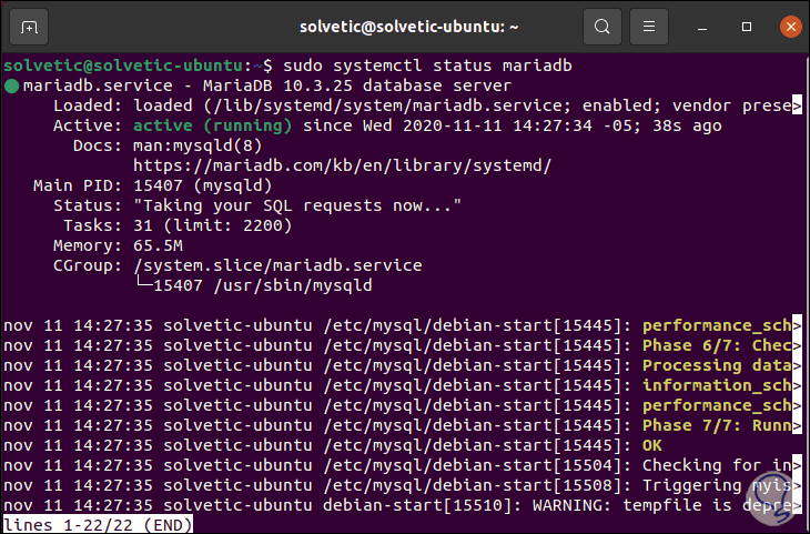 Ahora habilitamos MariaDB con el arranque de Ubuntu 21.04: