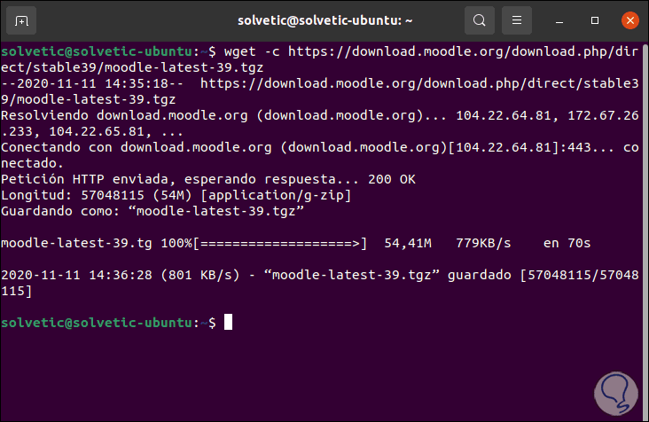 Después de esto, vamos a descargar los repositorios de Moodle con la orden: