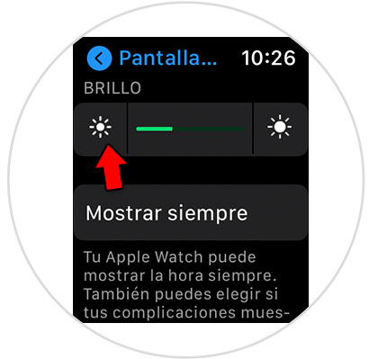 - Aquí bajamos el brillo pulsando en el boton izquierdo en la franja de brillo en el Apple Watch