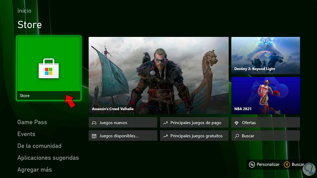Vamos a nuestra pantalla principal y entramos en la opción de “Store” desplazando la pantalla hacia abajo.