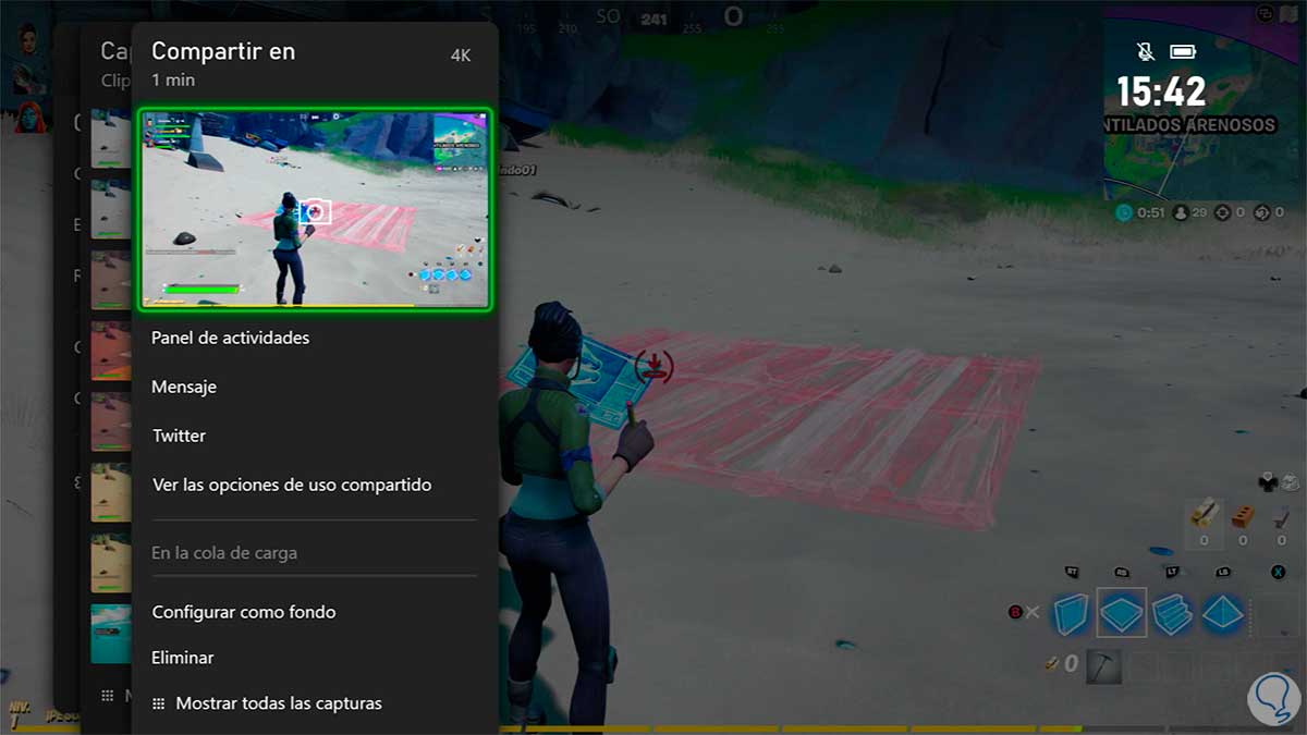 Pulsa sobre una de las capturas de clip realizadas y podrás compartirla o incluso configurarla como fondo.