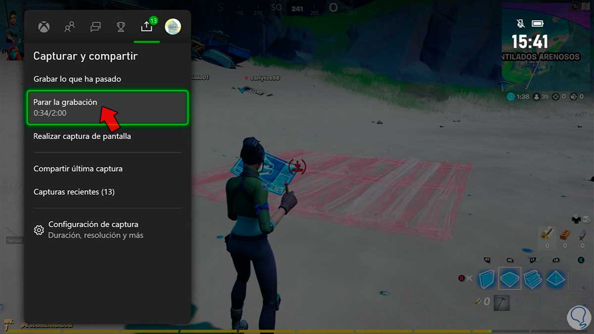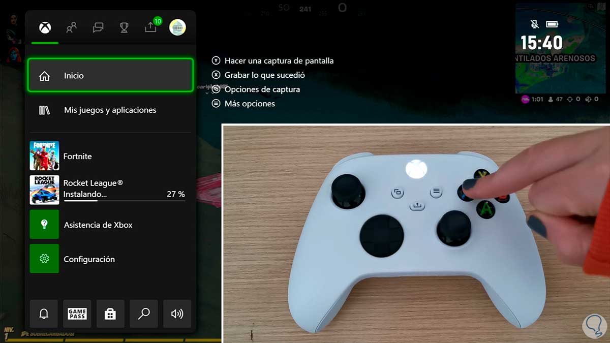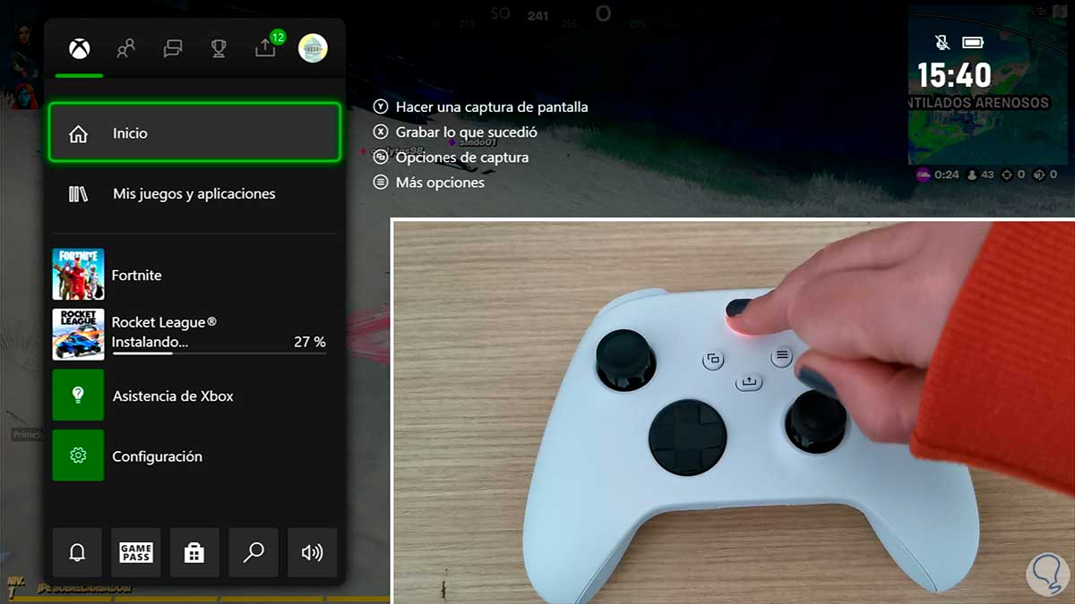 Con el botón “RB” superior derecho, nos desplazamos por ese menú hasta llegar al apartado de “Capturar y compartir” .