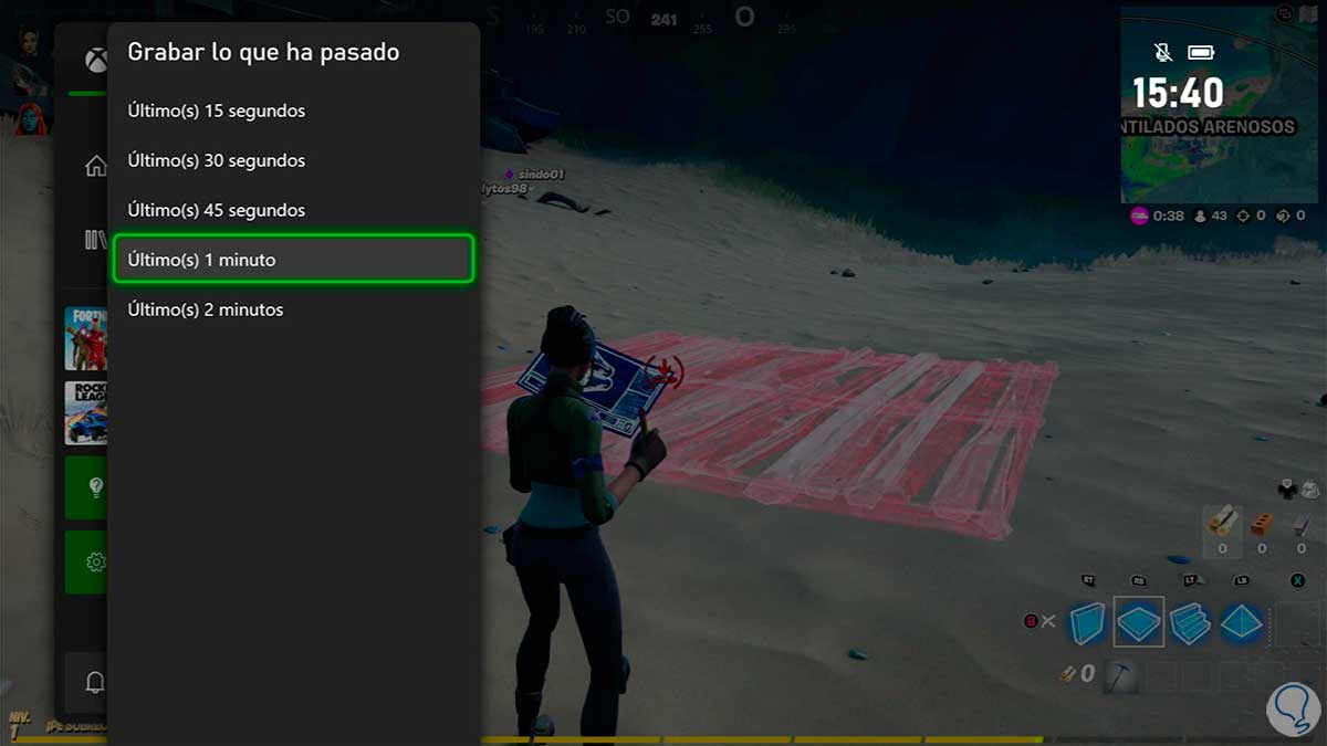 Aquí veremos que se despliegan diferentes opciones. Para grabar lo que ocurrió hace un periodo de tiempo, pulsaremos en el botón “X”