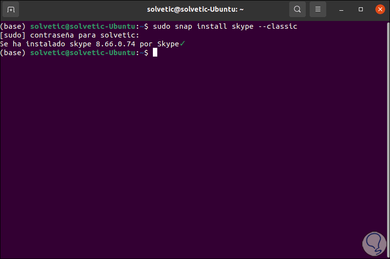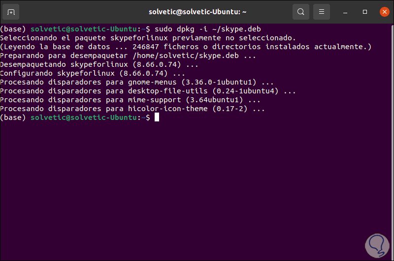 Ahora instalamos Skype con el siguiente comando: