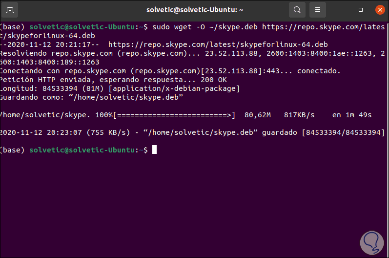 Este es otro de los métodos disponibles para esta tarea, en este caso debemos descargar la versión más reciente de Skype con el siguiente comando: