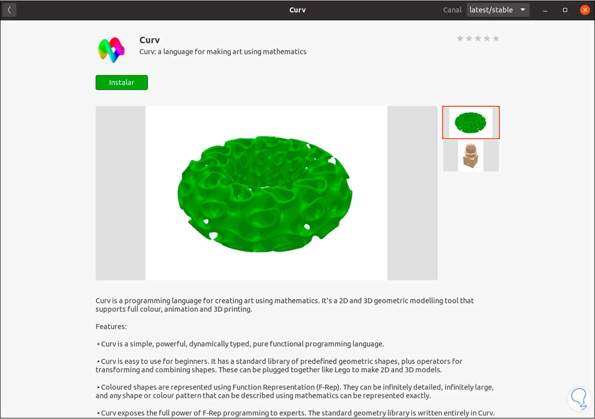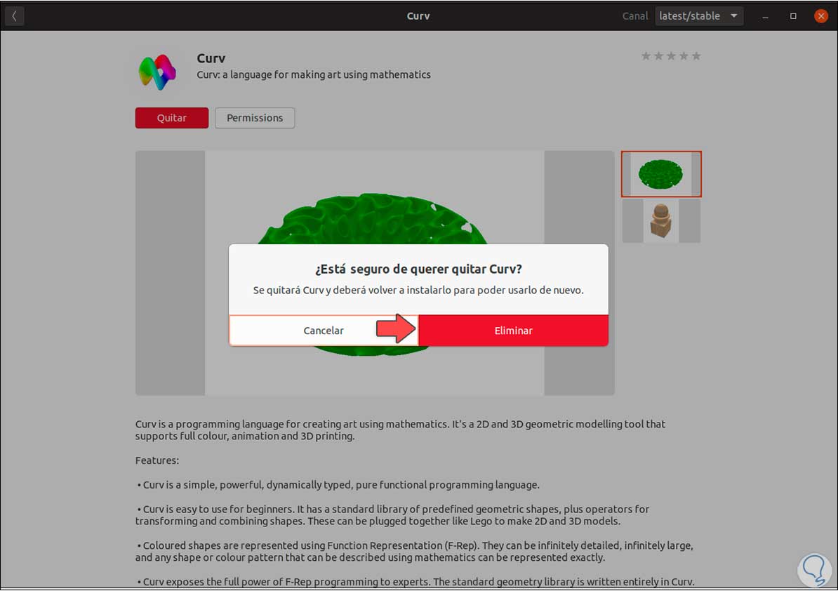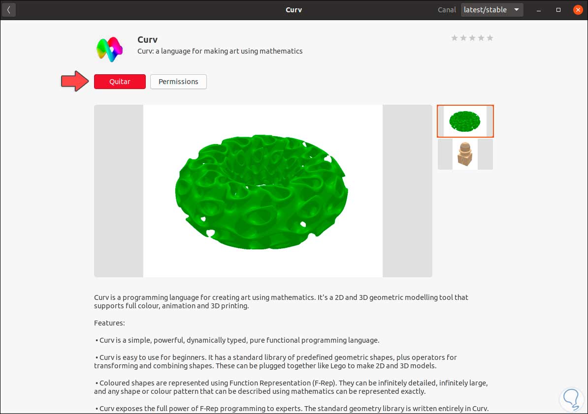 En primer lugar, buscamos la aplicación que deseamos desinstalar, en este ejemplo Curv: