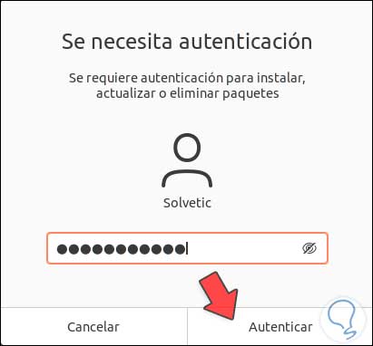 Damos clic en “Autenticar” y se desinstalara este programa de Ubuntu 21.04 a través de este método: