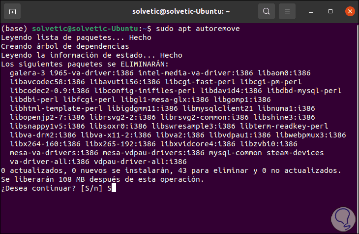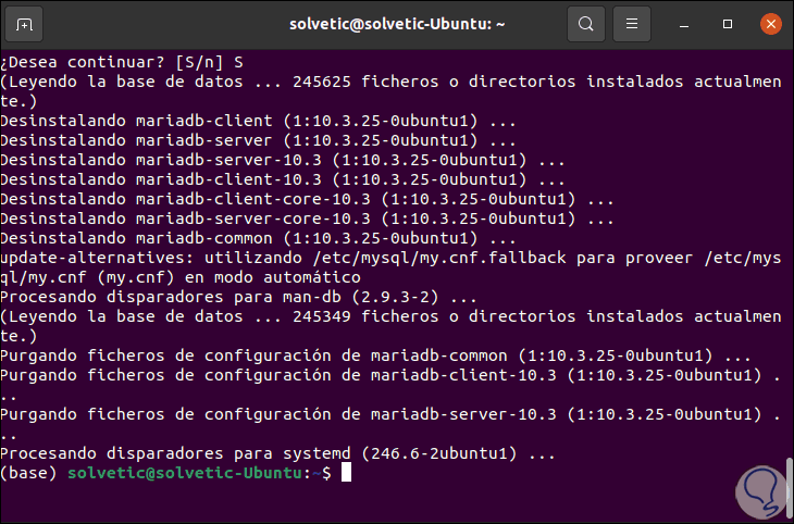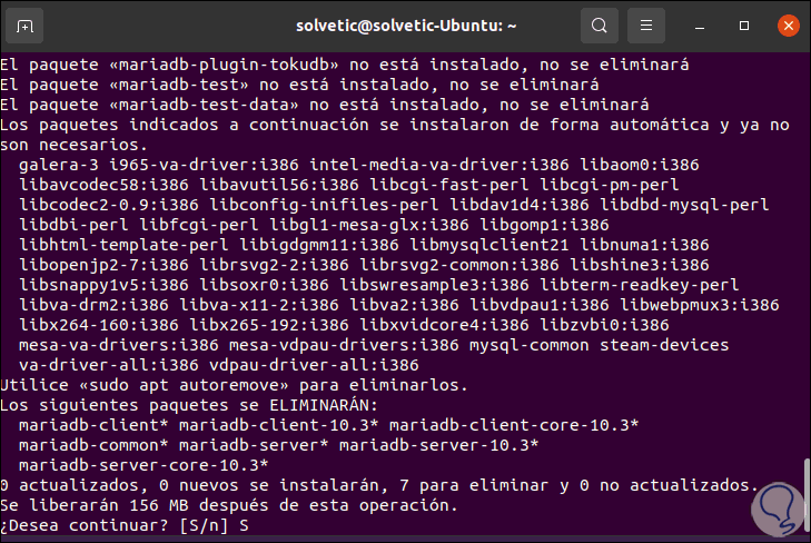 Después de esto, vamos a remover de forma automática los paquetes que están asociados a MariaDB:
